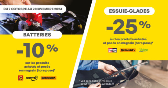 Du 12 novembre au 7 décembre 2024, jusqu’à 100€ en bon d’achat* à valoir dans votre point de vente Eurotyre […]