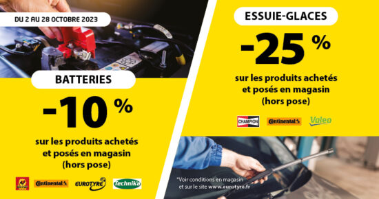 Du 2 Mai au 30 Juin 2023, chez Eurotyre, profitez d’une offre exceptionnelle sur les pneus Continental ! Jusqu’à 20€ […]